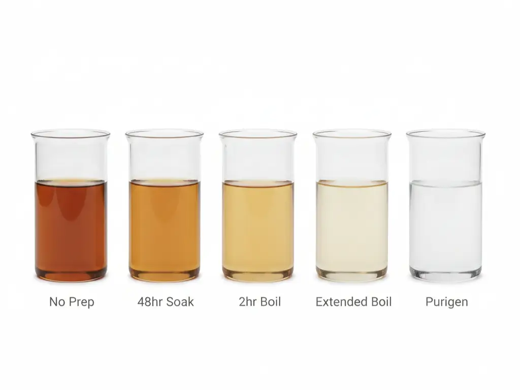 | Extended boil + soak | 8-10 hours | 7.0-7.2 | Near clear | Removes most benefits |