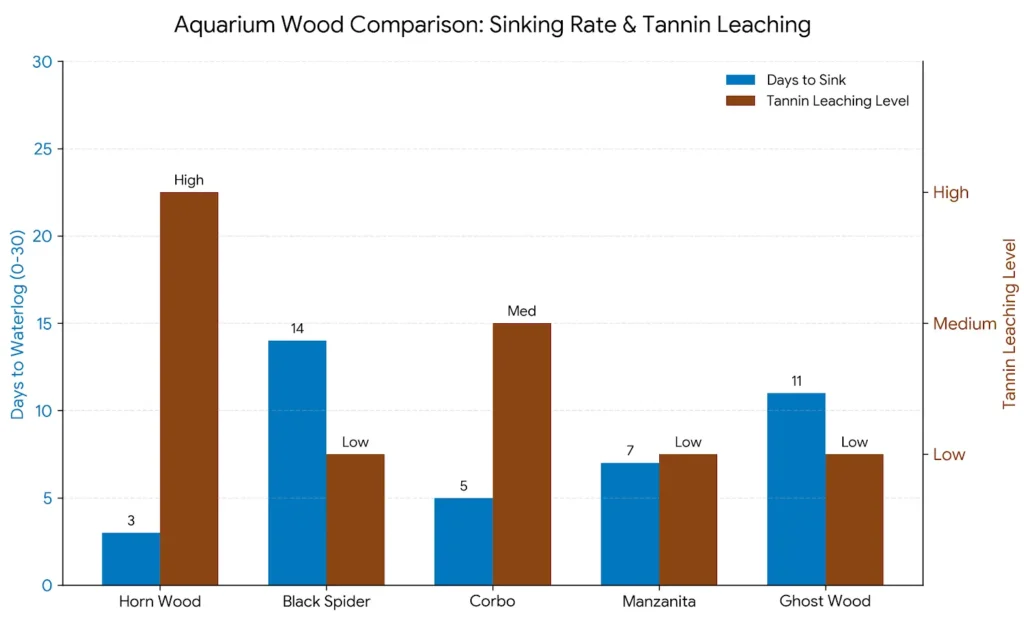 | Wood Type | Time to Sink | Tannin Release | Decay Resistance | Approx Cost (2024) |